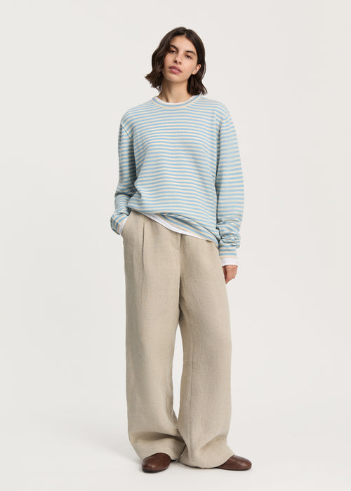A timeless, smooth-knitted sweater made from exceptionally soft cashmere. Inspired from the classic crewneck, designed in an oversized fit with a round neckline and classic ribbed edges, giving the sweater an elegant and refined look.