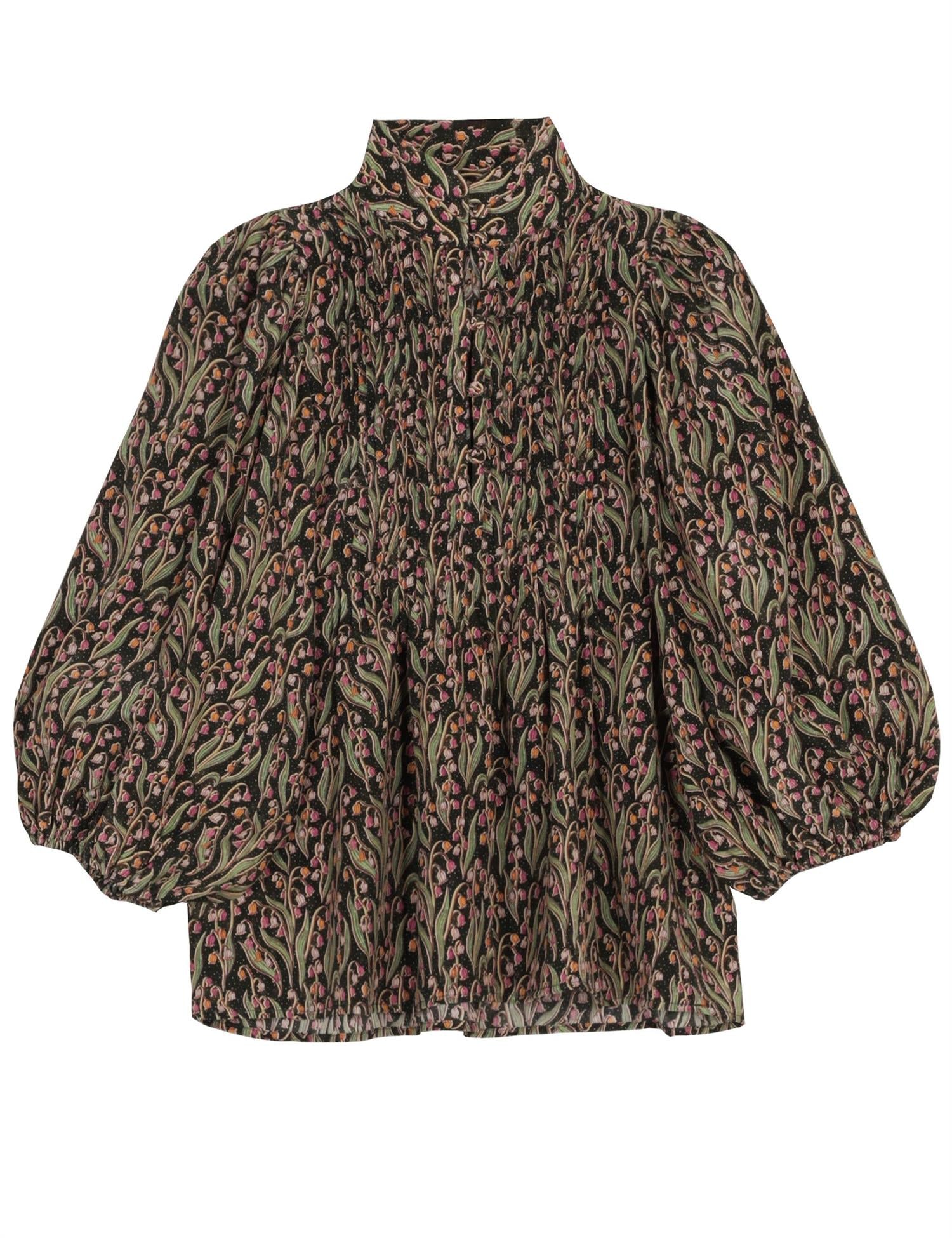 Made from 100% silk, Nikita Blouse features a high collar, voluminous sleeves and half-buttoned front – all wrapped in the poetic “Kielo” print. A bold yet elegant silhouette with flow and flair for everyday wear with personality.