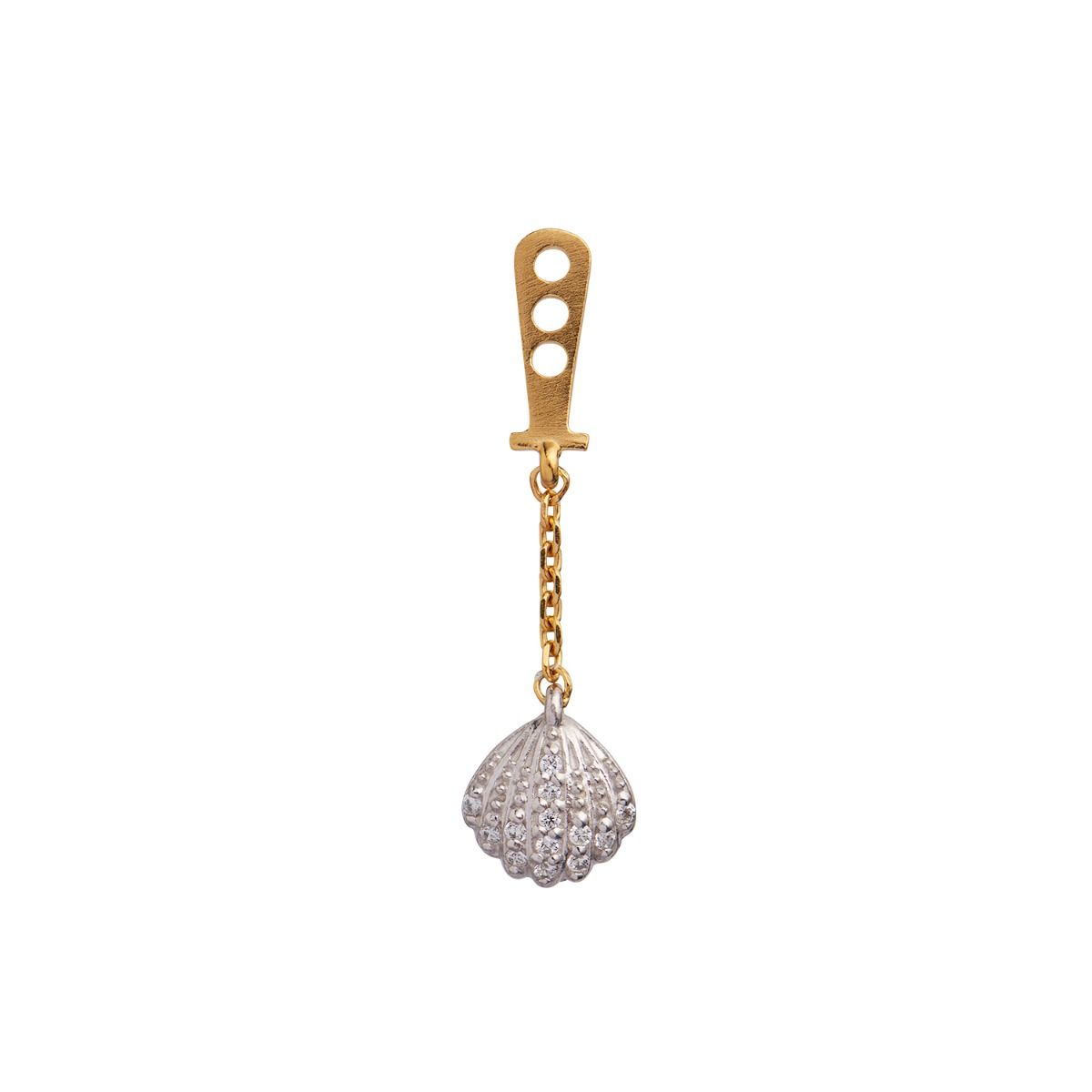 Beskrivelse: Skjønn liten behind-ear vedheng med vintage shell i gull og sterlingsølv. Vedhenget er bekledt med små hvite zirkoner.
