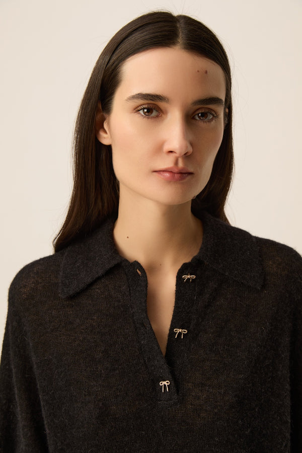 Combining modern style with sportswear heritage, the Cowboy polo sweater offers a glimpse of the must-haves for your spring wardrobe. Made from incredibly soft alpaca and merino wool, its gold bow buttons elevate its style.