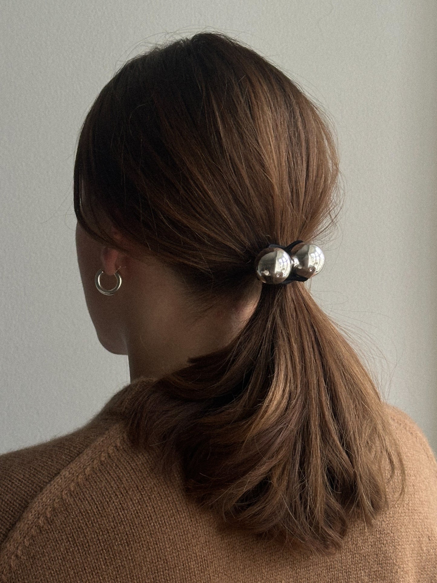 Add a touch of edge to your ponytail with the Amina elastic. Featuring two bold metal balls in gold or silver tones, it's the perfect blend of simple and statement.