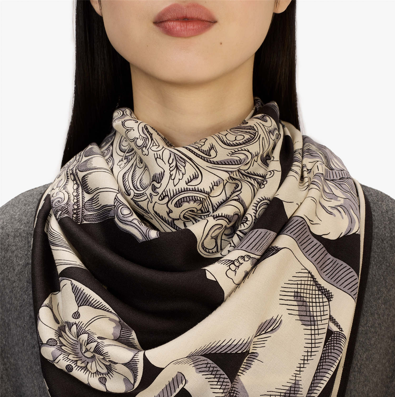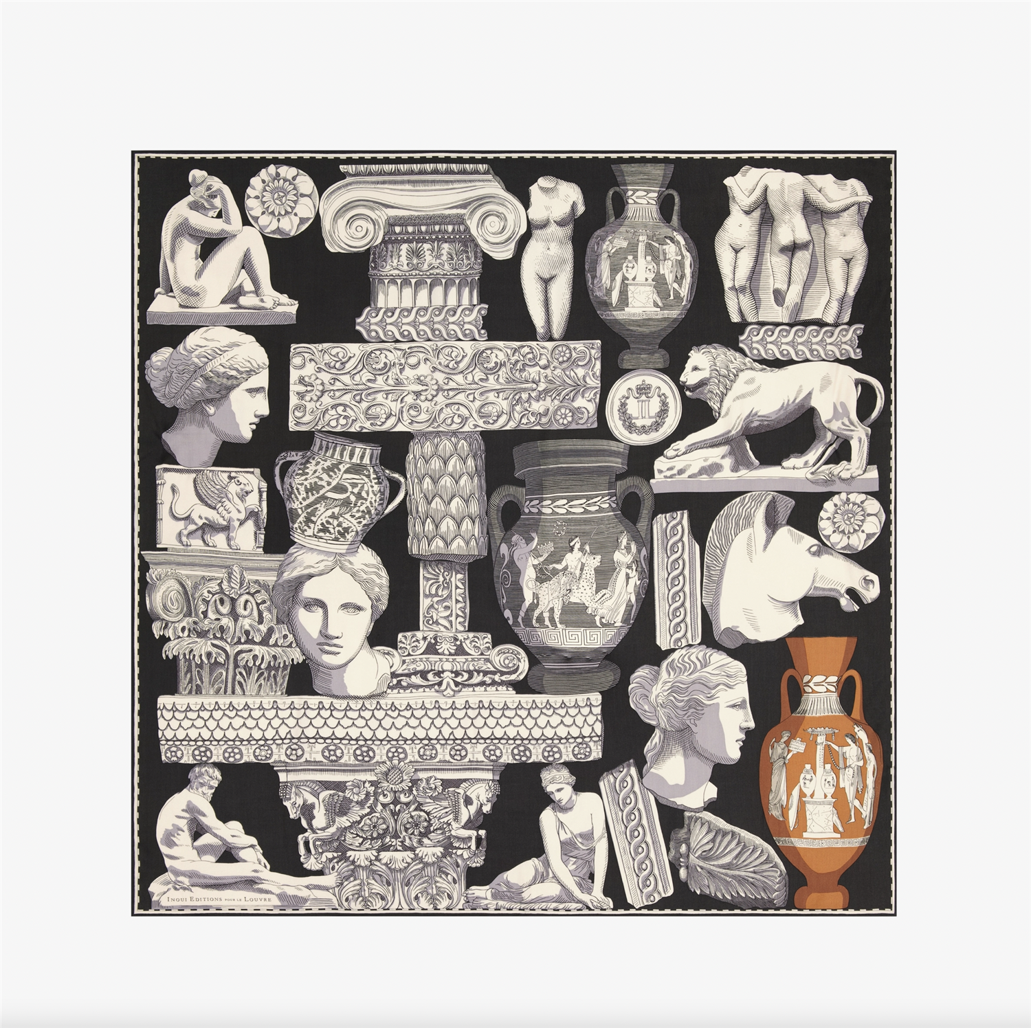 Inoui Editions for the Louvre: a collaboration featuring three exclusive drawings for squares, scarves and leather goods. A staple at Inoui Editions for several seasons now, the square scarf is now a staple in our collections, and comes in a variety of sizes depending on the design. It can be put to many different uses, bringing art and clothing together and becoming a playful and versatile part of any outfit. The 130x130 square scarf can be worn around the neck or tied into a skirt or wrap-around top.