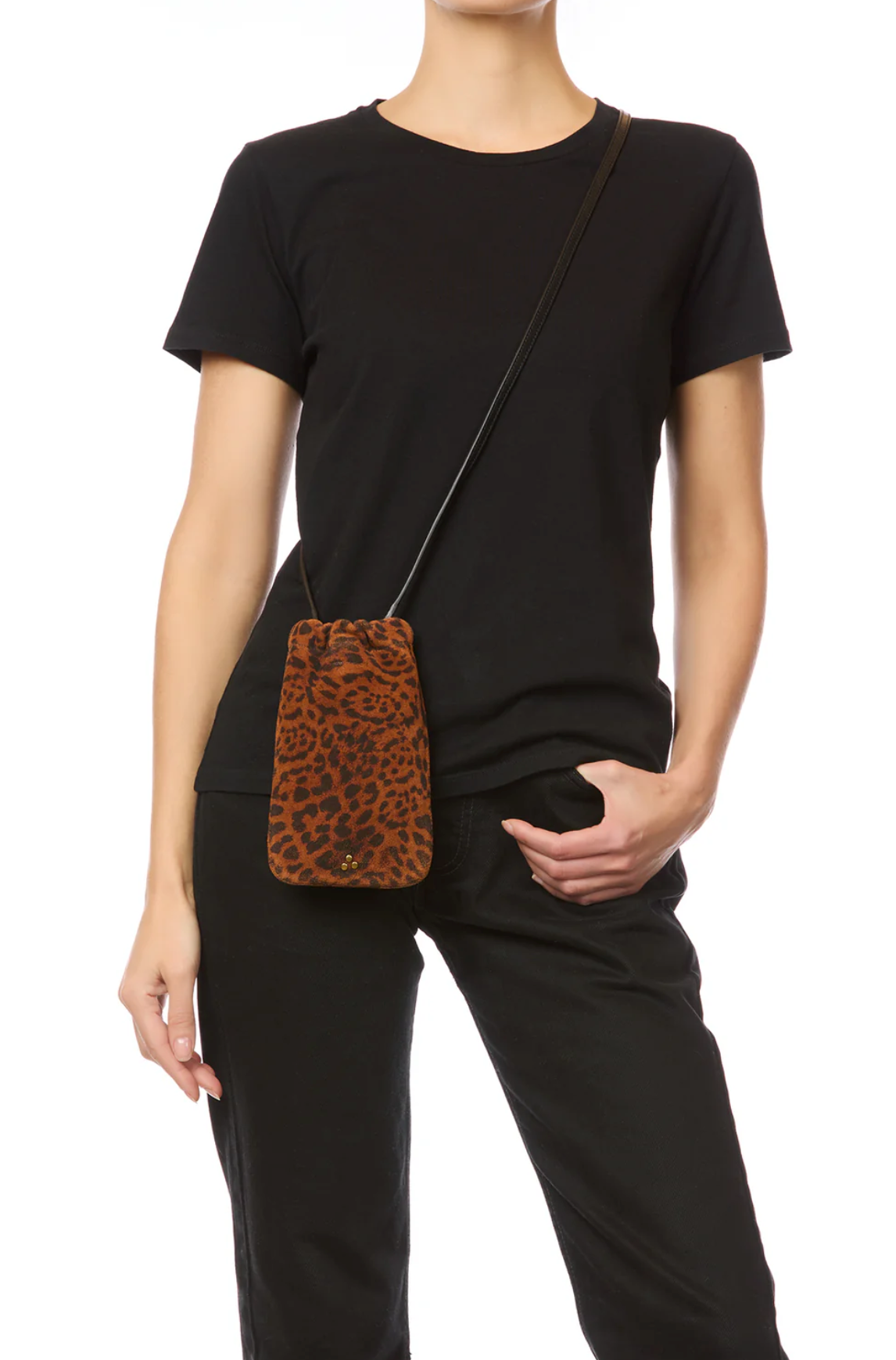 Soft mobile case with a slim leather shoulder strap. Shoulder strap length: 117 cm.
