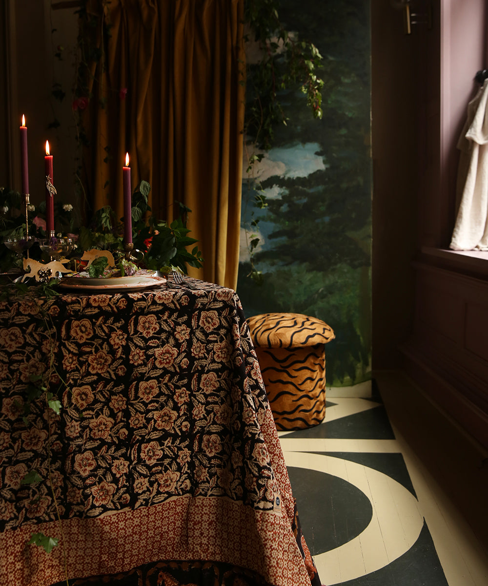 Discover the Maggie Horse Single Throw in Tote Bag, a delightful tablecloth to enhance your home decor. This beautiful tablecloth, measuring 140 x 220 cm, is made from soft, high-quality cotton. Each piece is block-printed by hand by our talented team in India, making every tablecloth unique.
