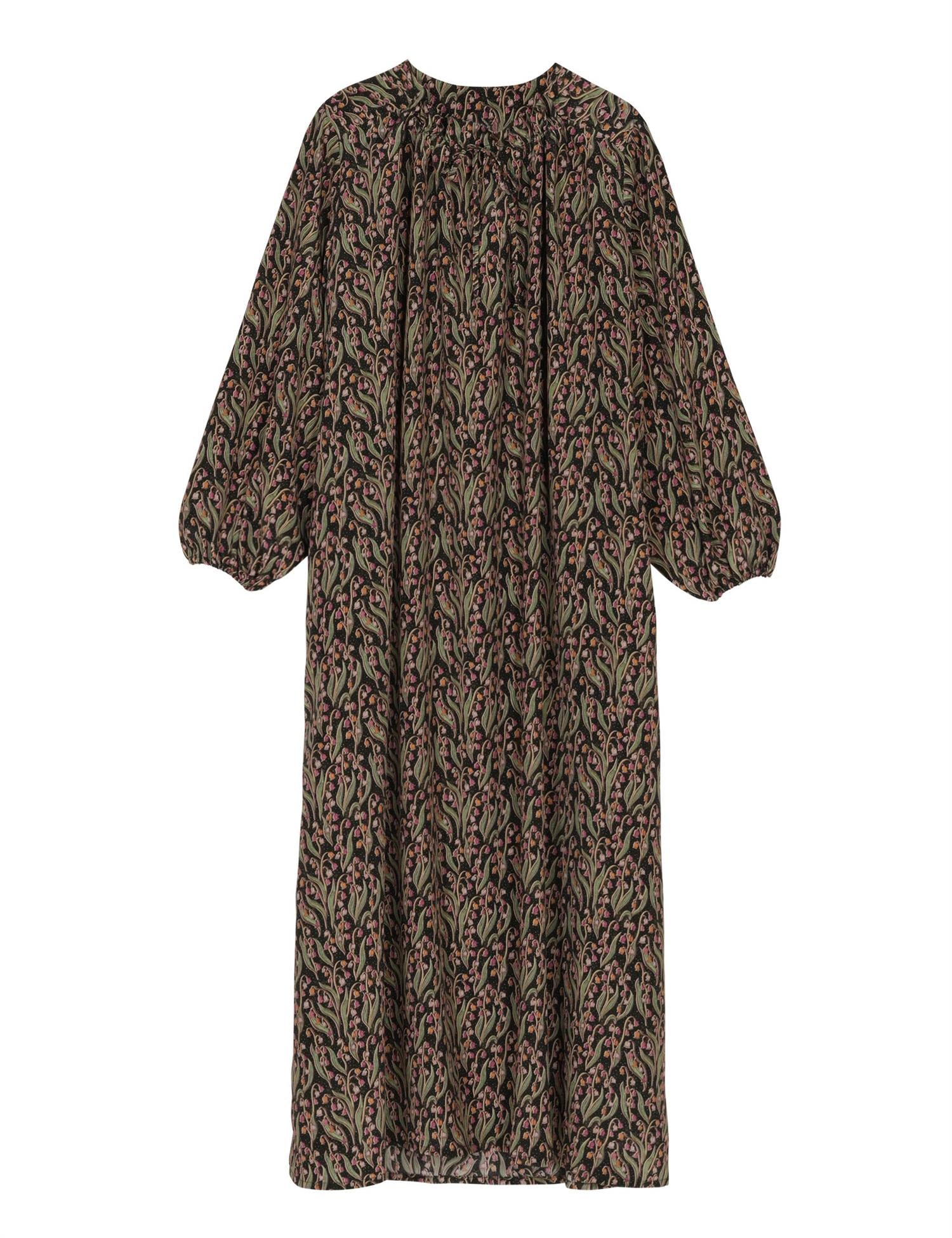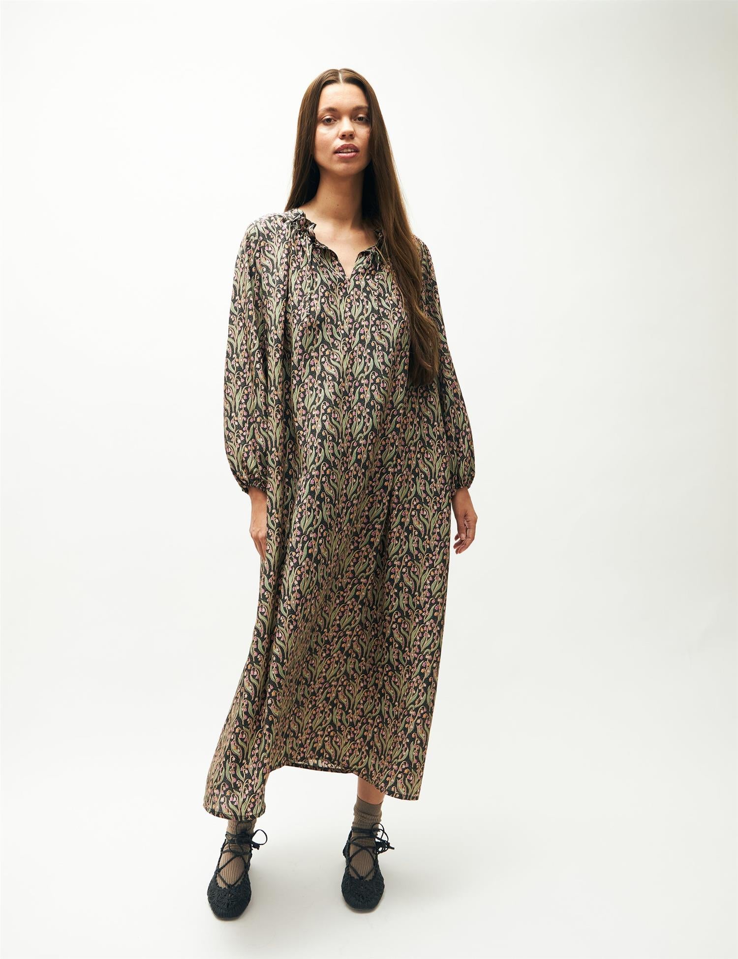 Ivory Dress is all about movement and lightness. Her billowy sleeves, flowing fabric and optional waist tie allow you to shape her to your liking - without sacrificing comfort. The delicate "Kielo" print adds a dreamy touch, while side seam pockets and elasticated cuffs make her as functional as she is graceful.