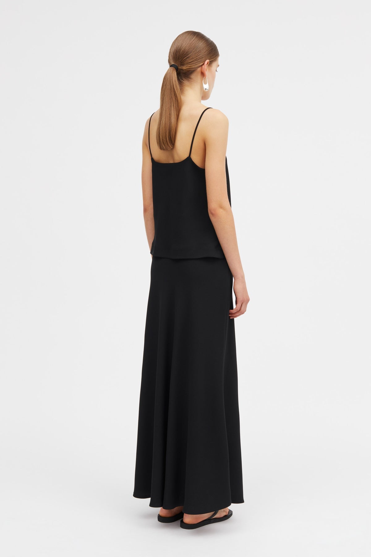 Half sun skirt with slanted pockets. Cut on bias.