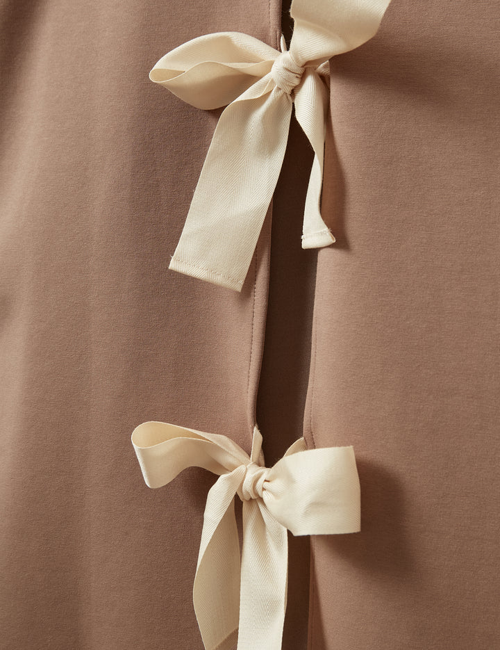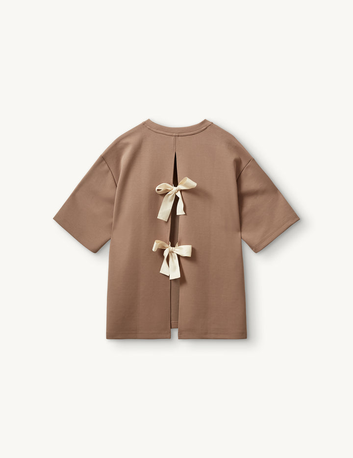 The TG Bow Tee is an oversized boyfriend-style T-shirt crafted from heavyweight cotton for a structured yet comfortable feel. It features an open-back design accented with delicate bow detailing, blending relaxed streetwear energy with a feminine, statement finish.