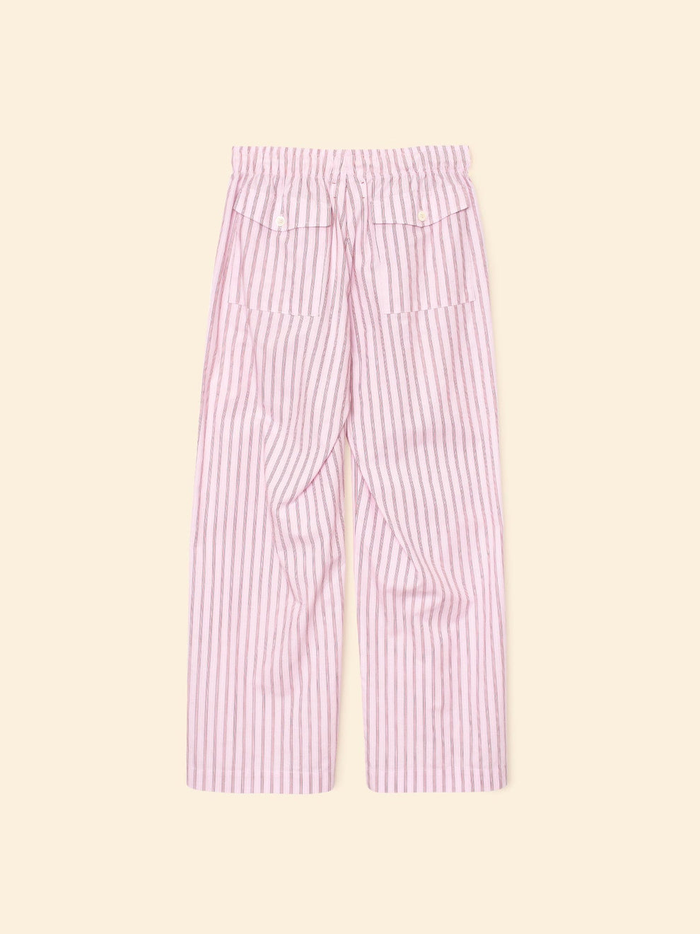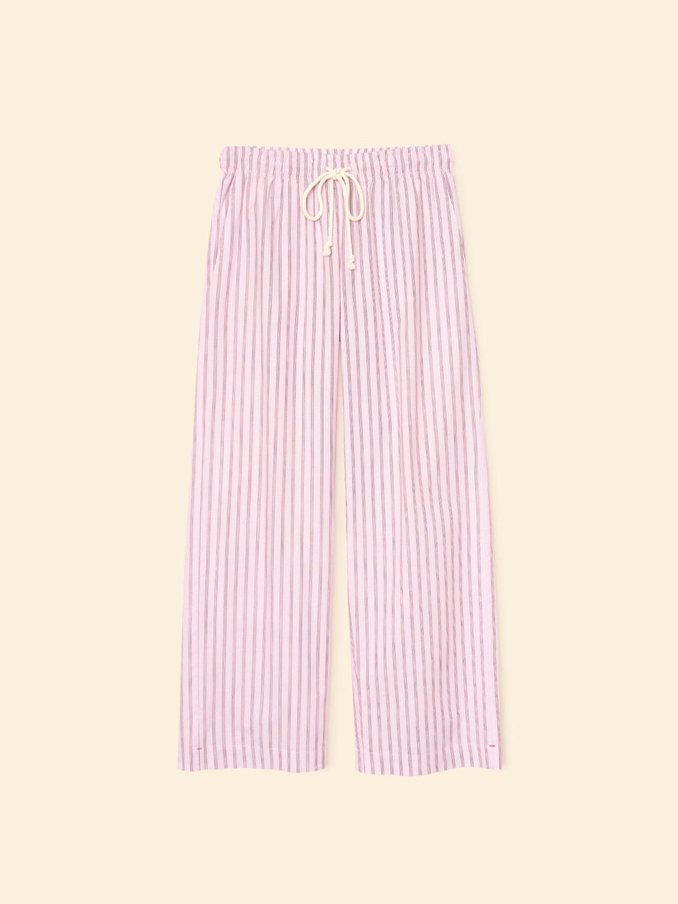 Earn your stripes. Made in our lightweight cotton stripe, Brinna is a wide-leg pull-on pant with an elasticized waist, contrast braided drawcord, side seam pockets, and back pockets with button closures.