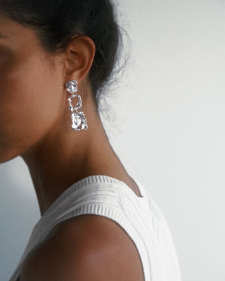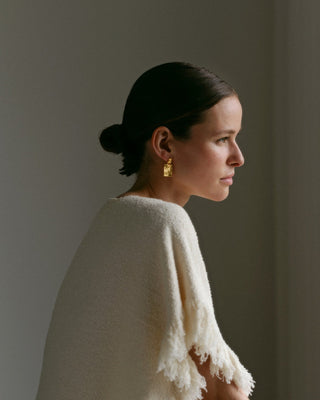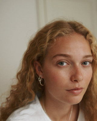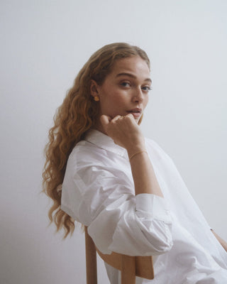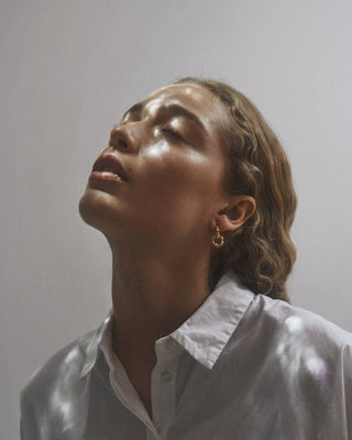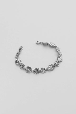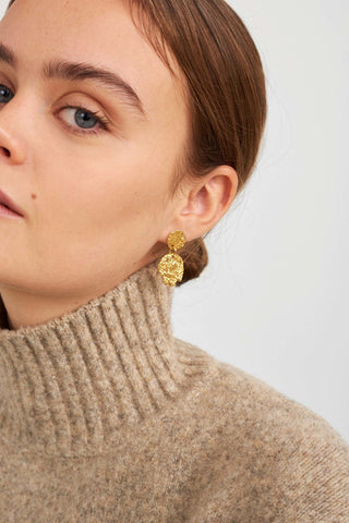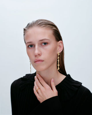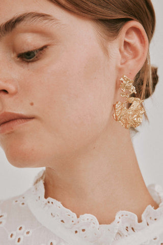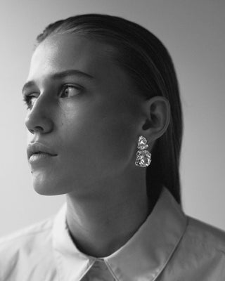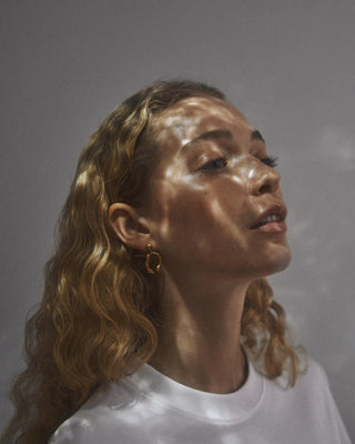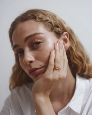 Når Lea Hoyer designer smykkene sine, er det gjennom en organisk prosess, hvor hun smelter materialet og slipper det i en skål med vann. På bunnen av skålen skapes en ufullkommen, organisk form av vannet.
