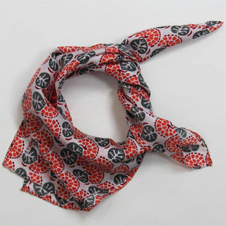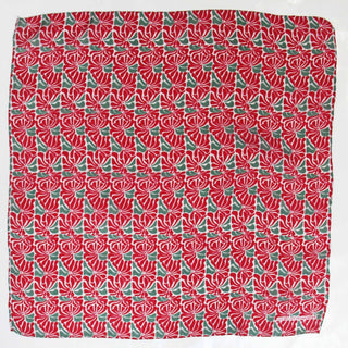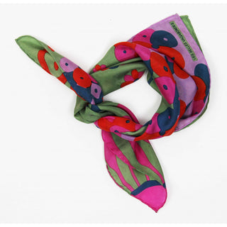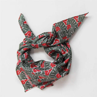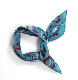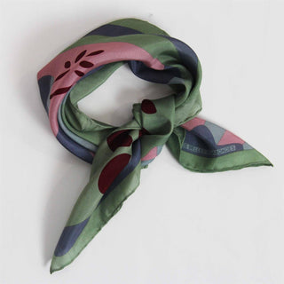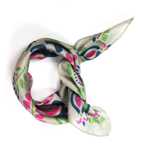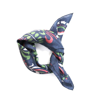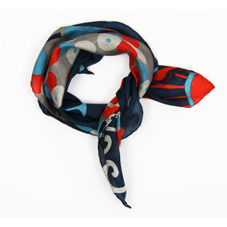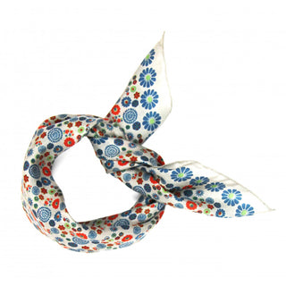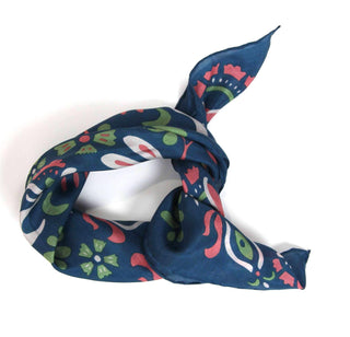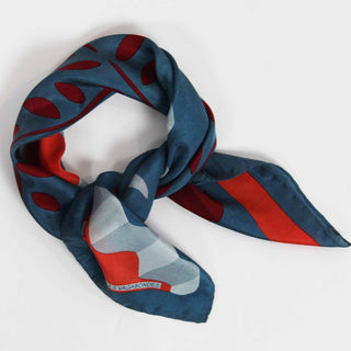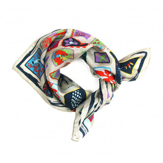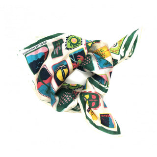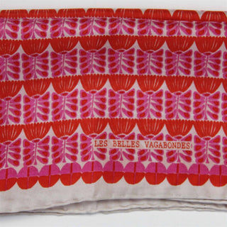 Skjerfene er håndtegnet i Frankrike, håndtrykt i India, og kommer i en eske inspirert av vintage fyrstikkesker.