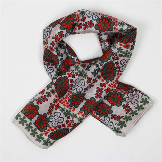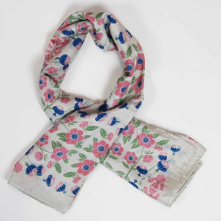 Skjerfene er håndtegnet i Frankrike, håndtrykt i India, og kommer i en eske inspirert av vintage fyrstikkesker.