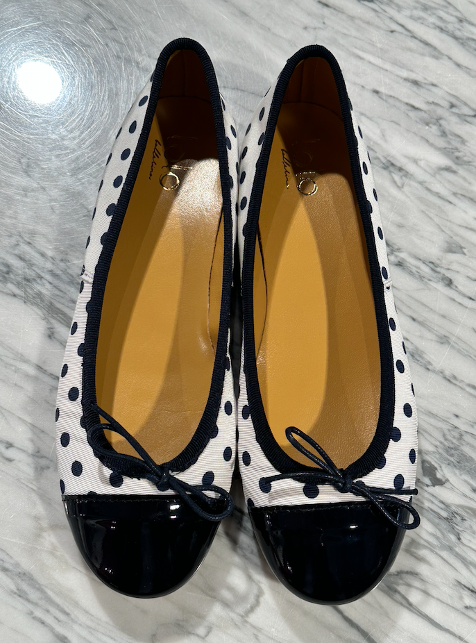 Handcrafted in Italy by our artisans, this iconic ballerina blends timeless savoir-faire with feminine ease. Finished with a leather sole and a delicate adjustable lace that ties gently around the foot, Coco Polka Dot is designed for effortless everyday elegance.