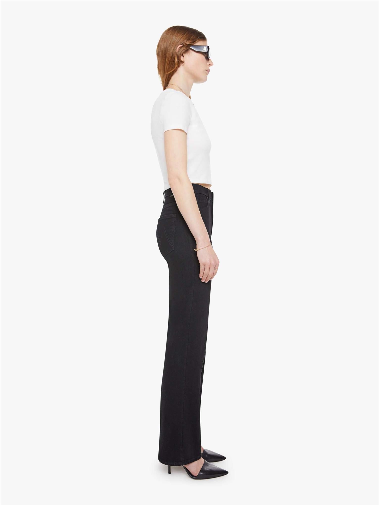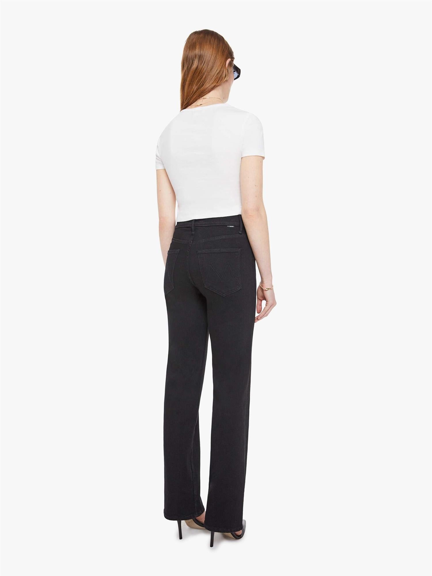 Lights out. A high-rise straight-leg jean with a 32-inch inseam and a clean hem. Made from stretch denim, Nighty Night is a true black with tonal hardware.