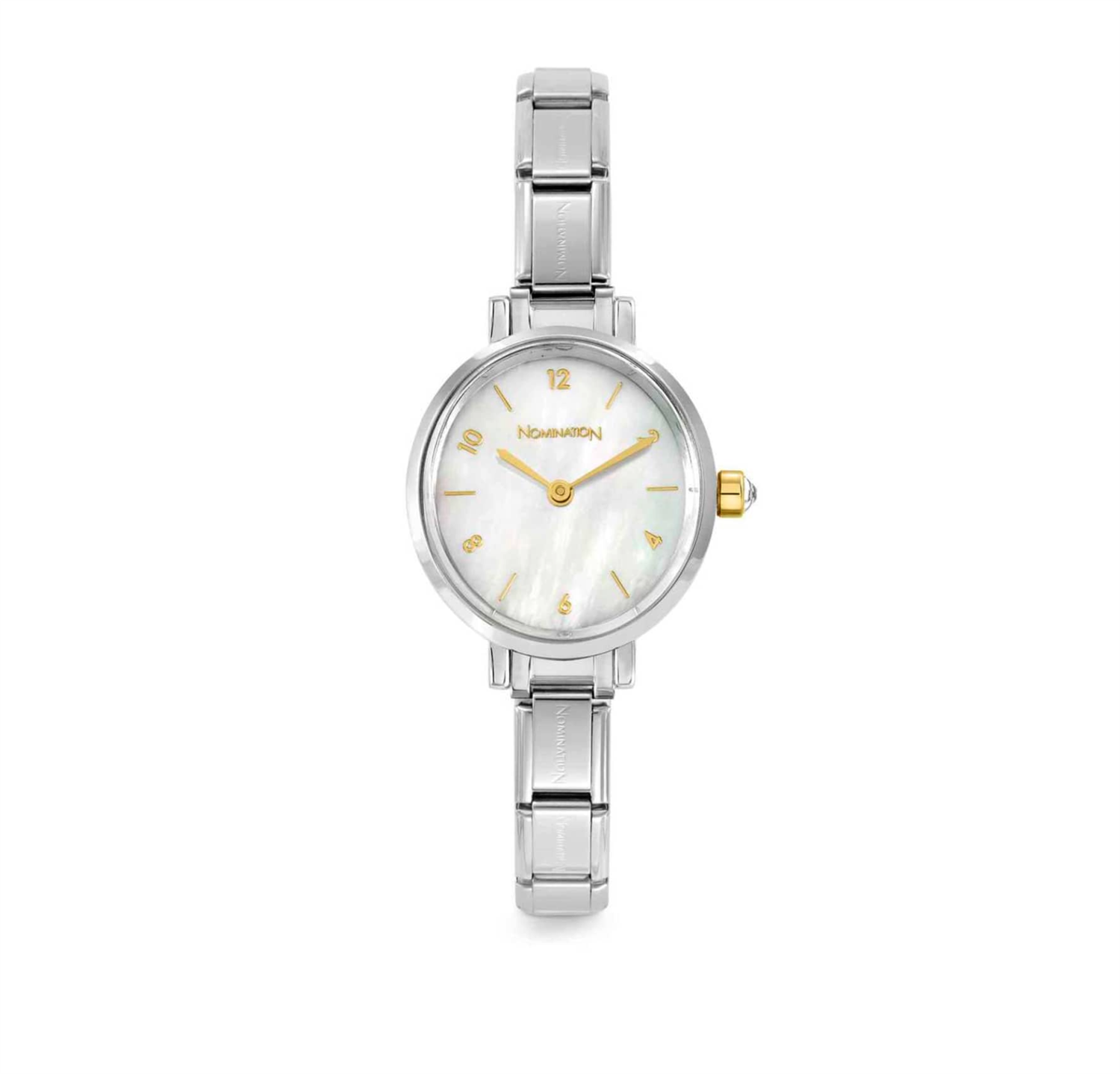 Stainless steel Time watch with case in White Mother of Pearl and Cubic Zirconia detail. It is possible to personalise the bracelet strap of the watch with Original Composable® Classic Links. Every detail of this watch was carefully designed to create a unique and sophisticated style.