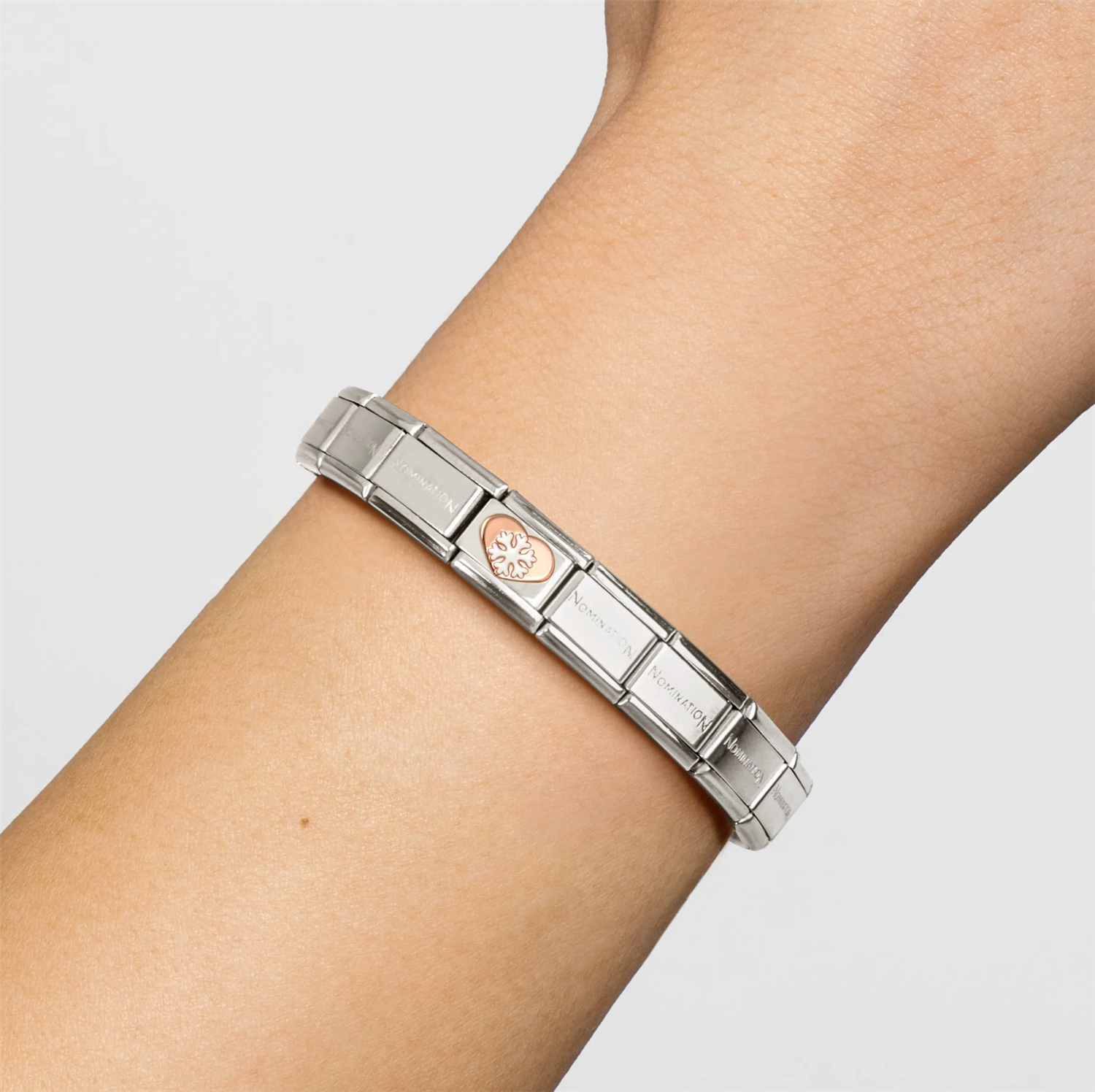Original Nomination Composable Classic Link for Composable bracelet in stainless steel with rose gold Heart and precious Snowflake. This Link is the perfect way to light up your bracelet during the winter holidays. This accessory makes every moment special and unique.