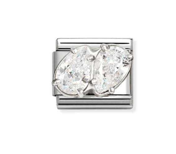 Composable CL steel, CZ and 925 sterling silver (09_WHITE double drops)