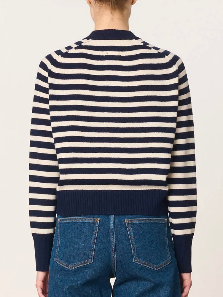 A structured cardigan with understated charm, featuring a straight cut and horn-effect buttons.