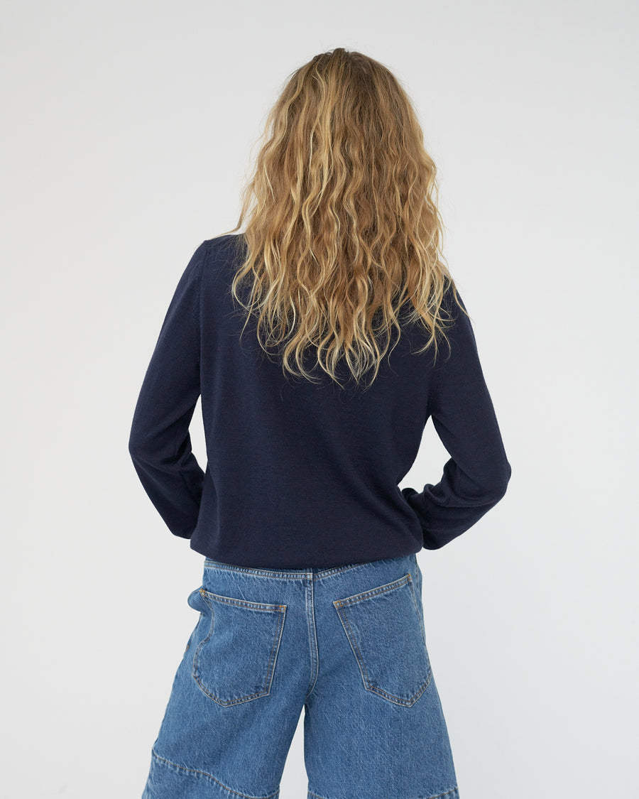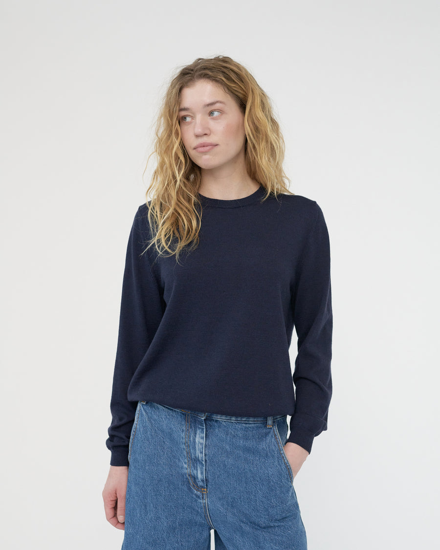 SOFT MERINO WOOL CREW NECK WITH A ROUND NECKLINE AND RIBBED DETAILING.