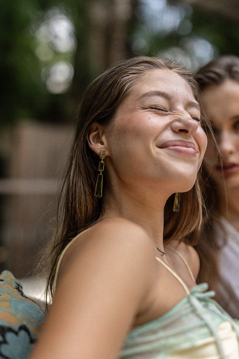 • material brass based earring with 18 karat gold inlay and sterling silver pin