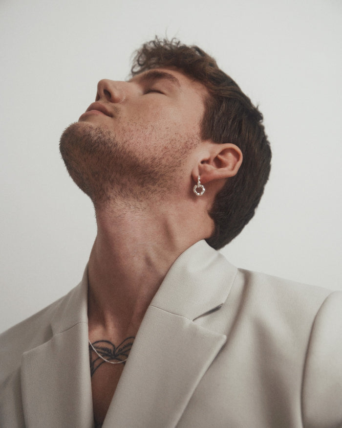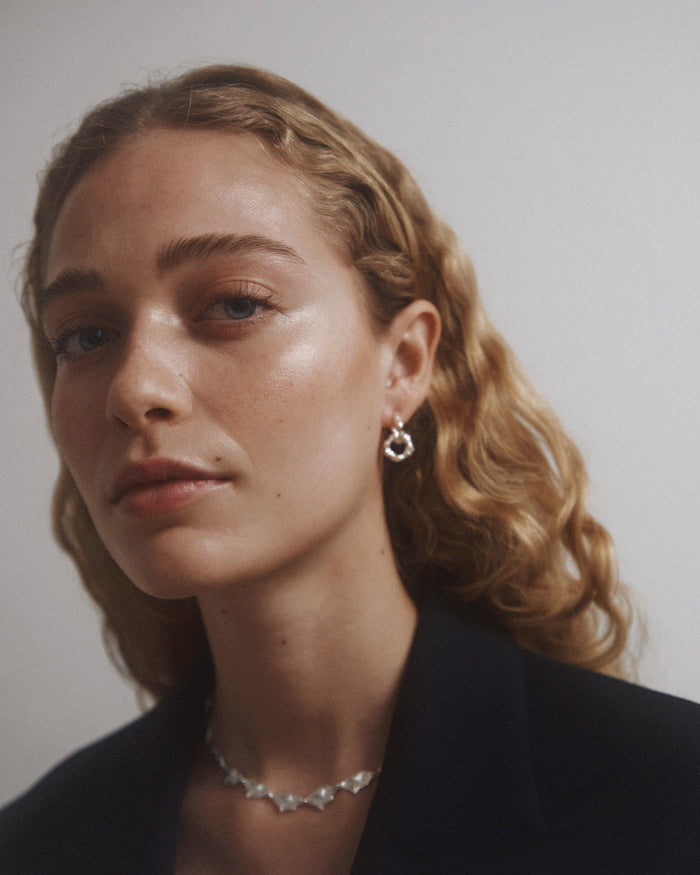 The Bay earring is inspired by a bay, which is a natural part of a coastline. A bay is the part of the coast, where the land naturally curves with a soft bend, and the sea is therefore surrounded by land on three sides. This is what gave the inspiration to the round curves that meet and together they create the perfect little hoop combined with a natural movement from the pendant hanging down.