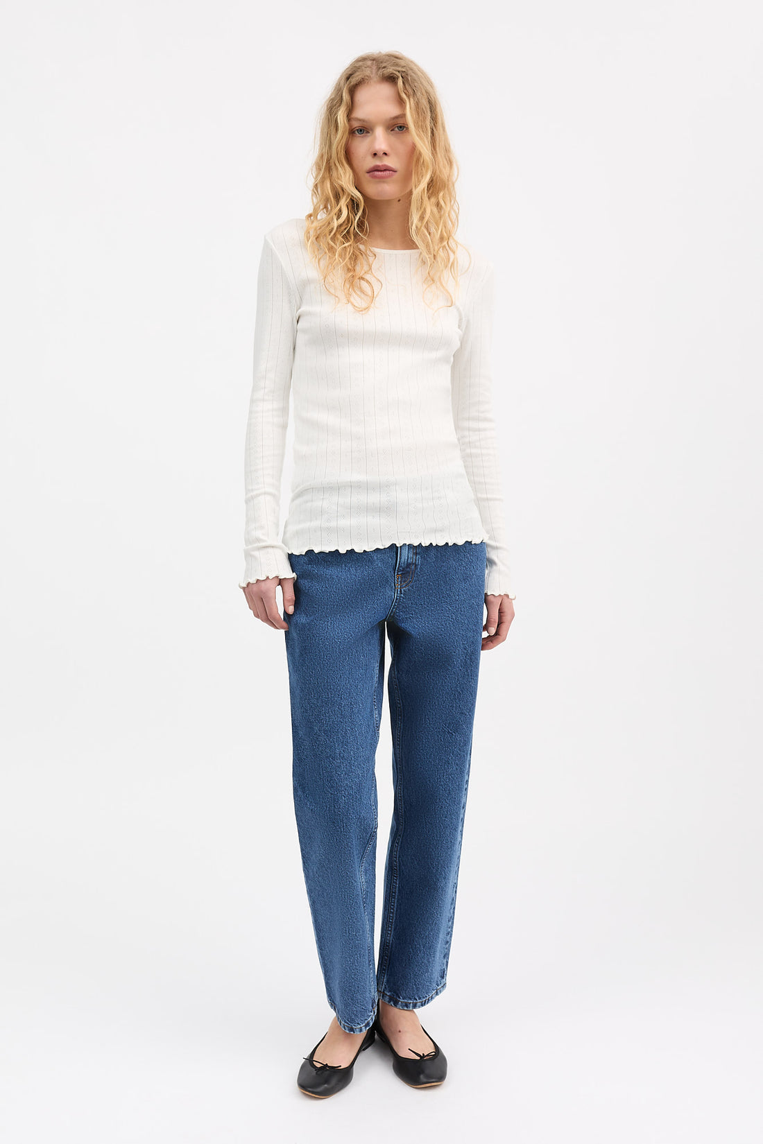 The blouse is made in 100% organic cotton and has a classic fit with needle pin. Perfect as an inner layer, as a casual blouse or comfortable home wear with the Edie leggings.