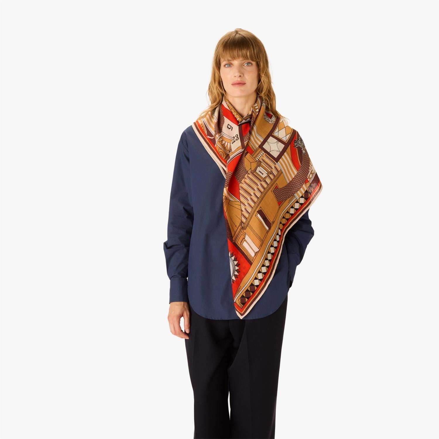 A staple at Inoui Editions for several seasons now, the square scarf is now a staple in our collections, and comes in a variety of sizes depending on the design. It has many different uses, bringing art and clothing together and becoming a playful and versatile part of any outfit. The 100x100 square scarf can be worn around the neck or tied into a wrap-around top.