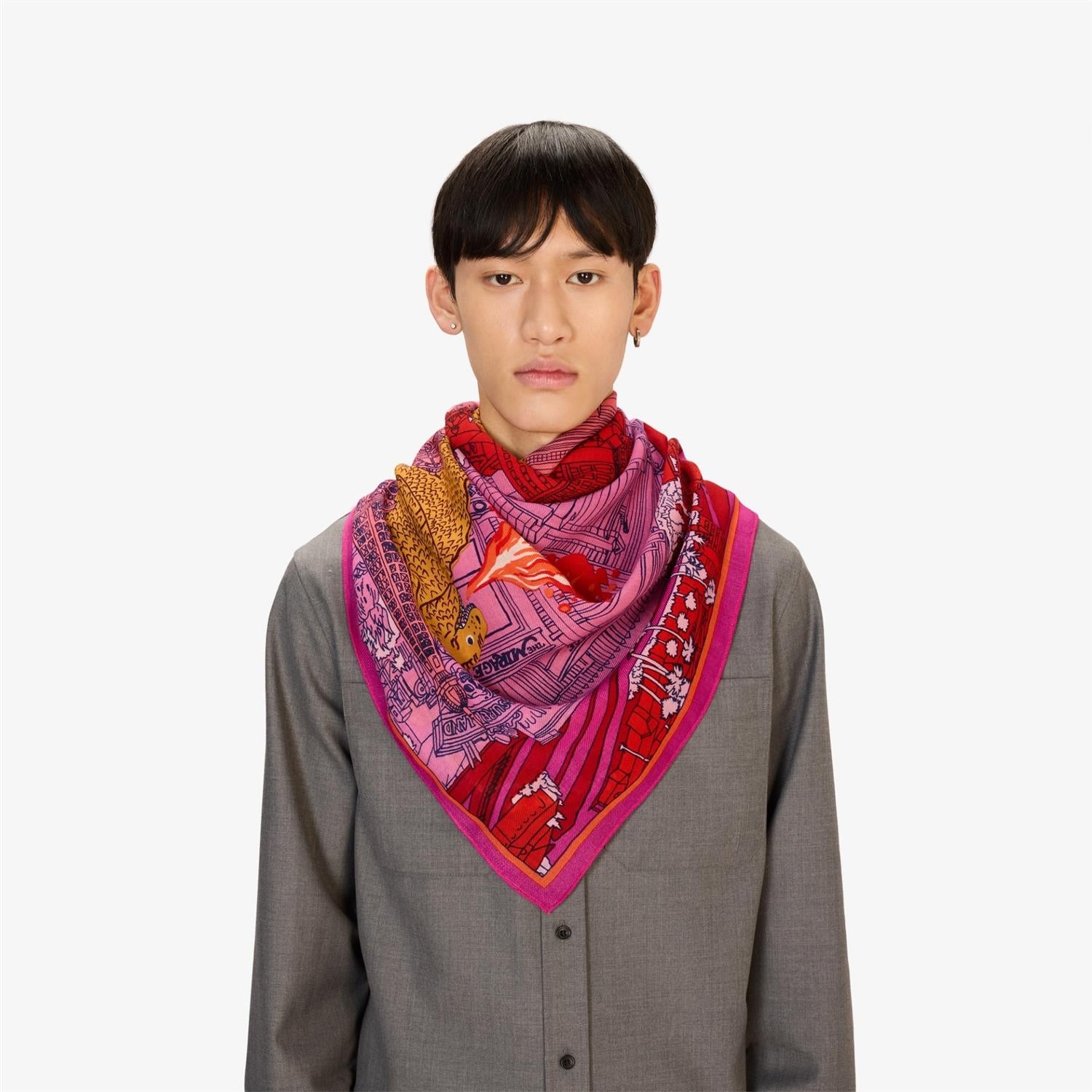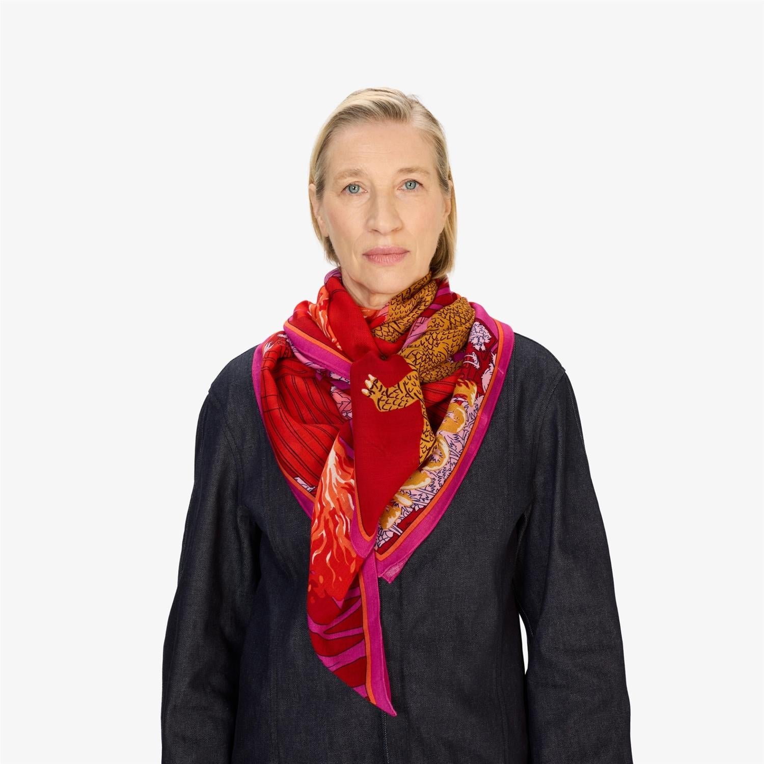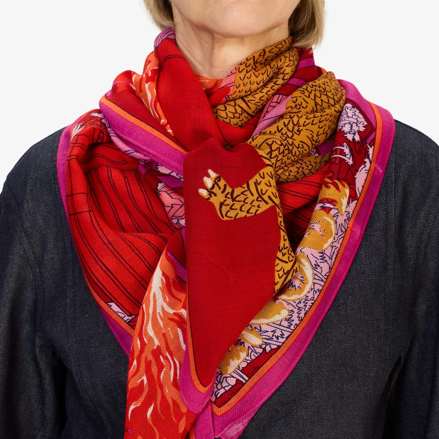 A staple at Inoui Editions for several seasons now, the square scarf is now a staple in our collections, and comes in a variety of sizes depending on the design. It can be put to many different uses, bringing art and clothing together and becoming a playful and versatile part of any outfit. The 130x130 square scarf can be worn around the neck or tied into a skirt or wrap-around top.