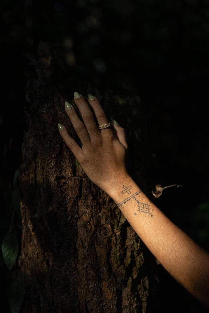 • material  brass based ring with 18 karat gold inlay