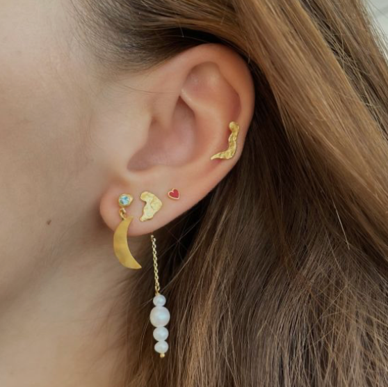 Description: Beautiful ear stud, which with its uneven surface gives a cool look. Materials: 18 carat gold-plated 925 sterling silver