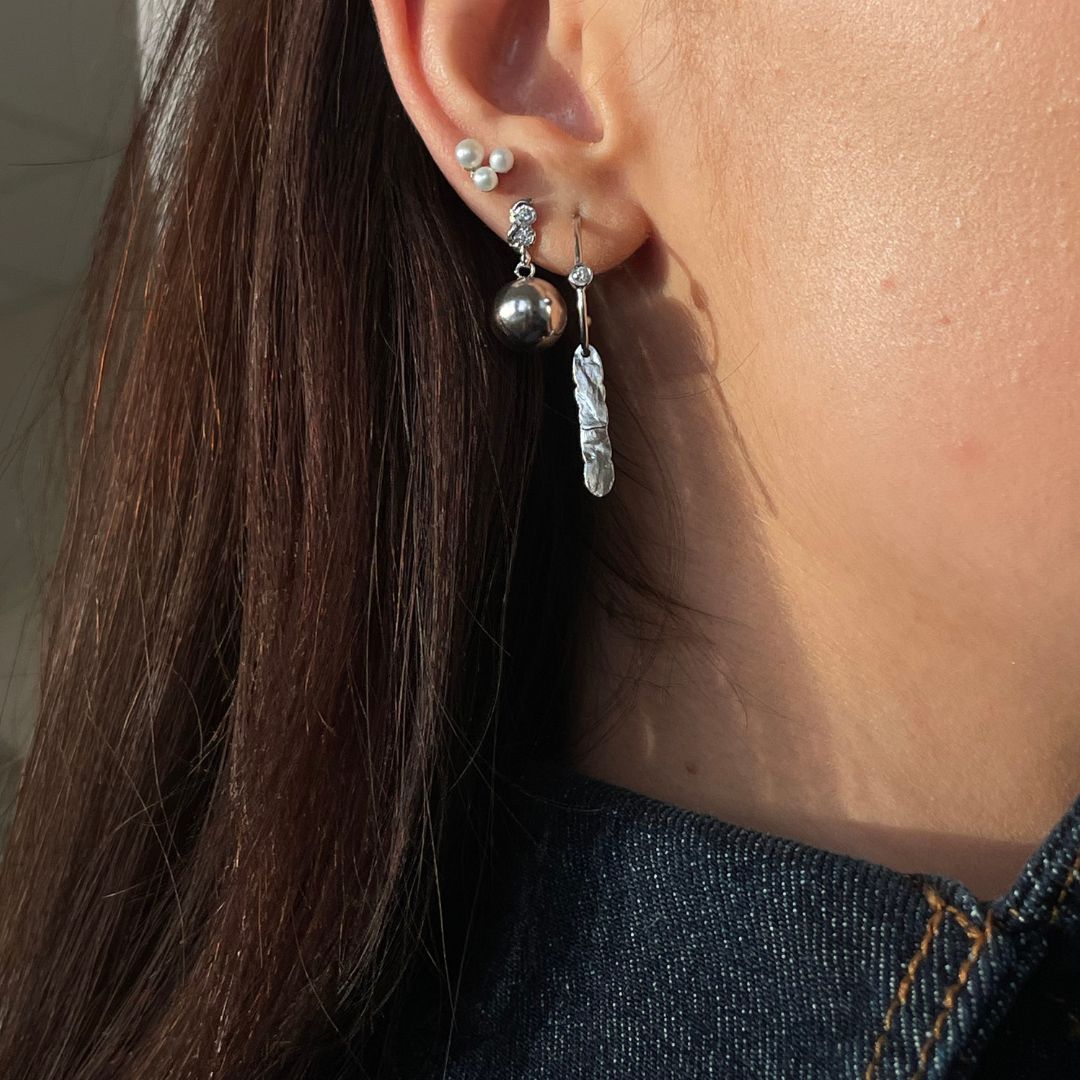 STINE A - Three Pearl Berries Earrings - Silver Single