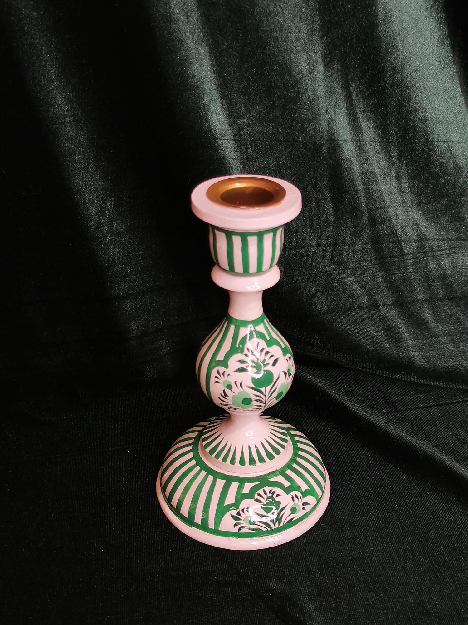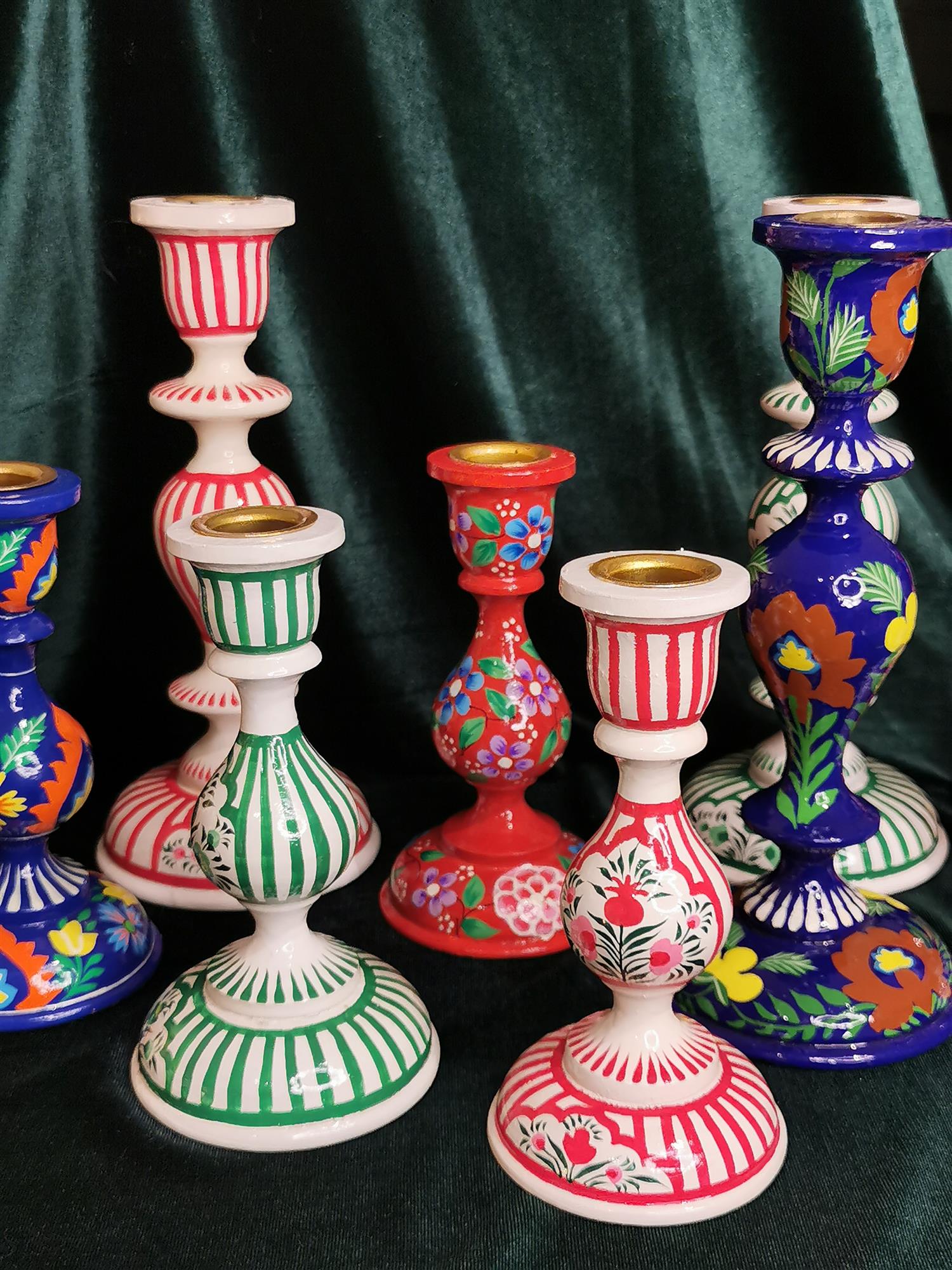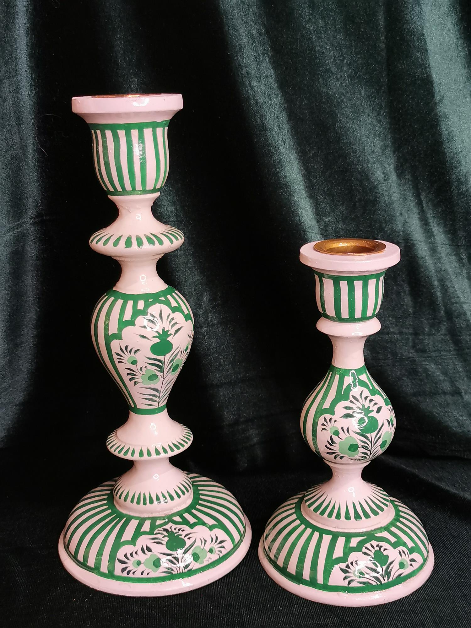 Curiosity Labs Srinagar candlesticks are made of hand-painted wood.