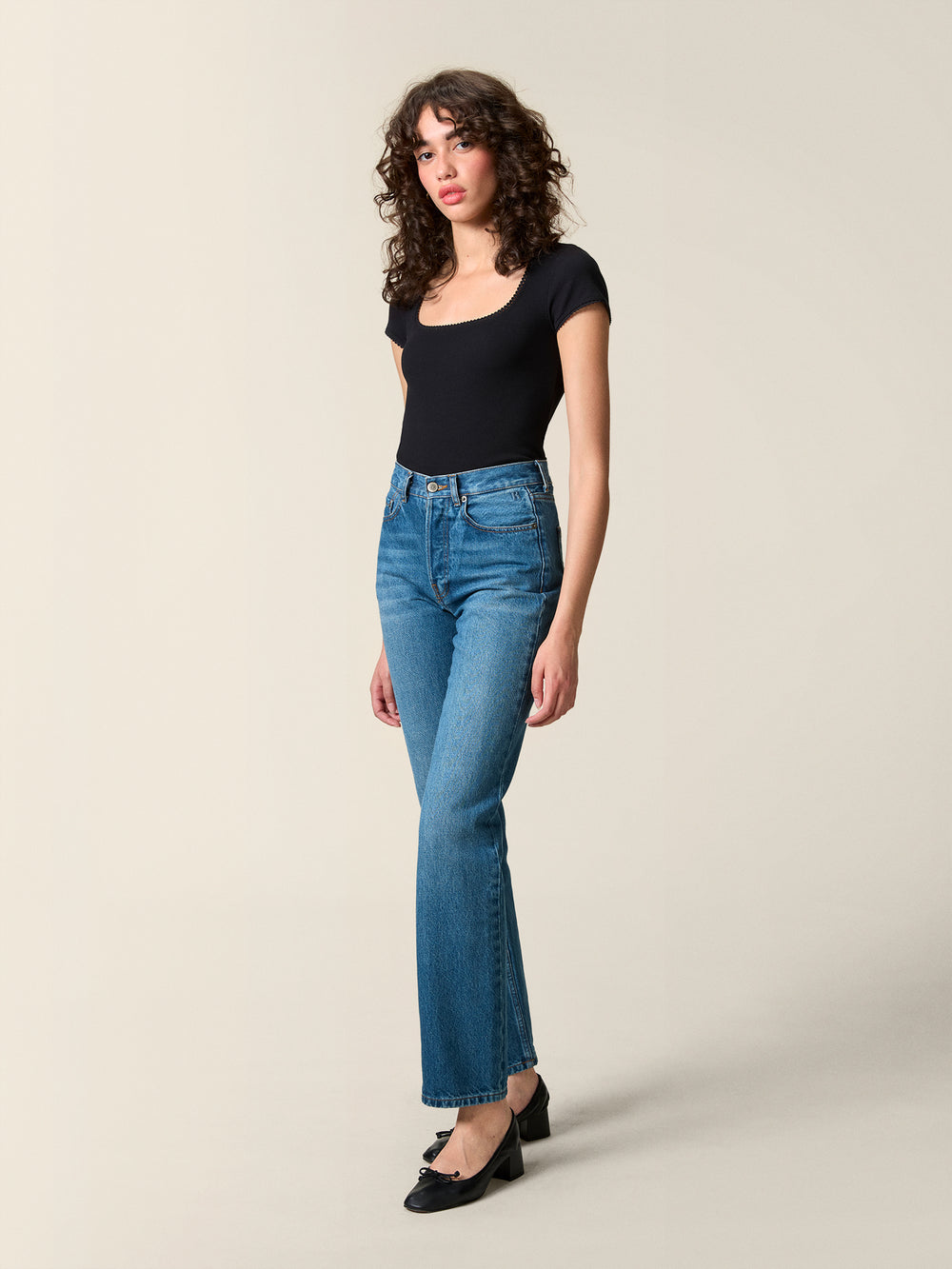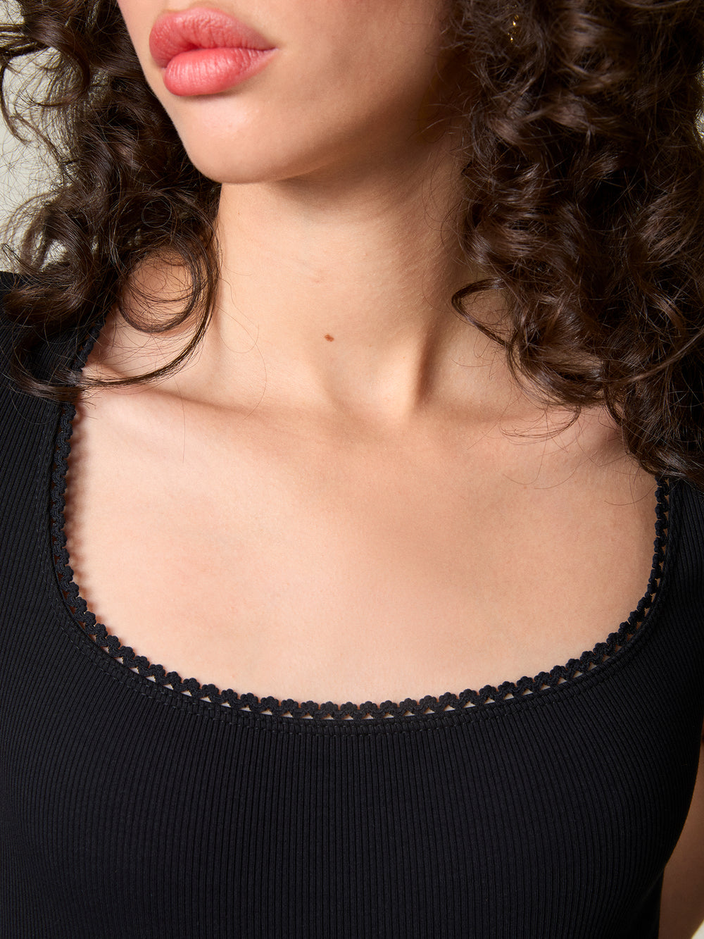Square neck stretch T-shirt.