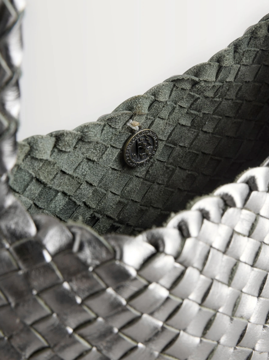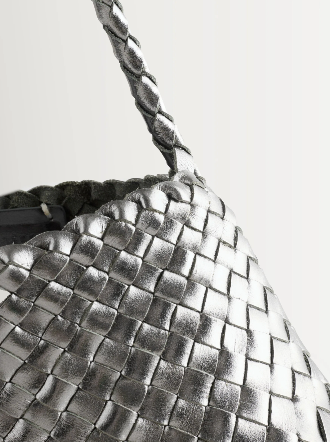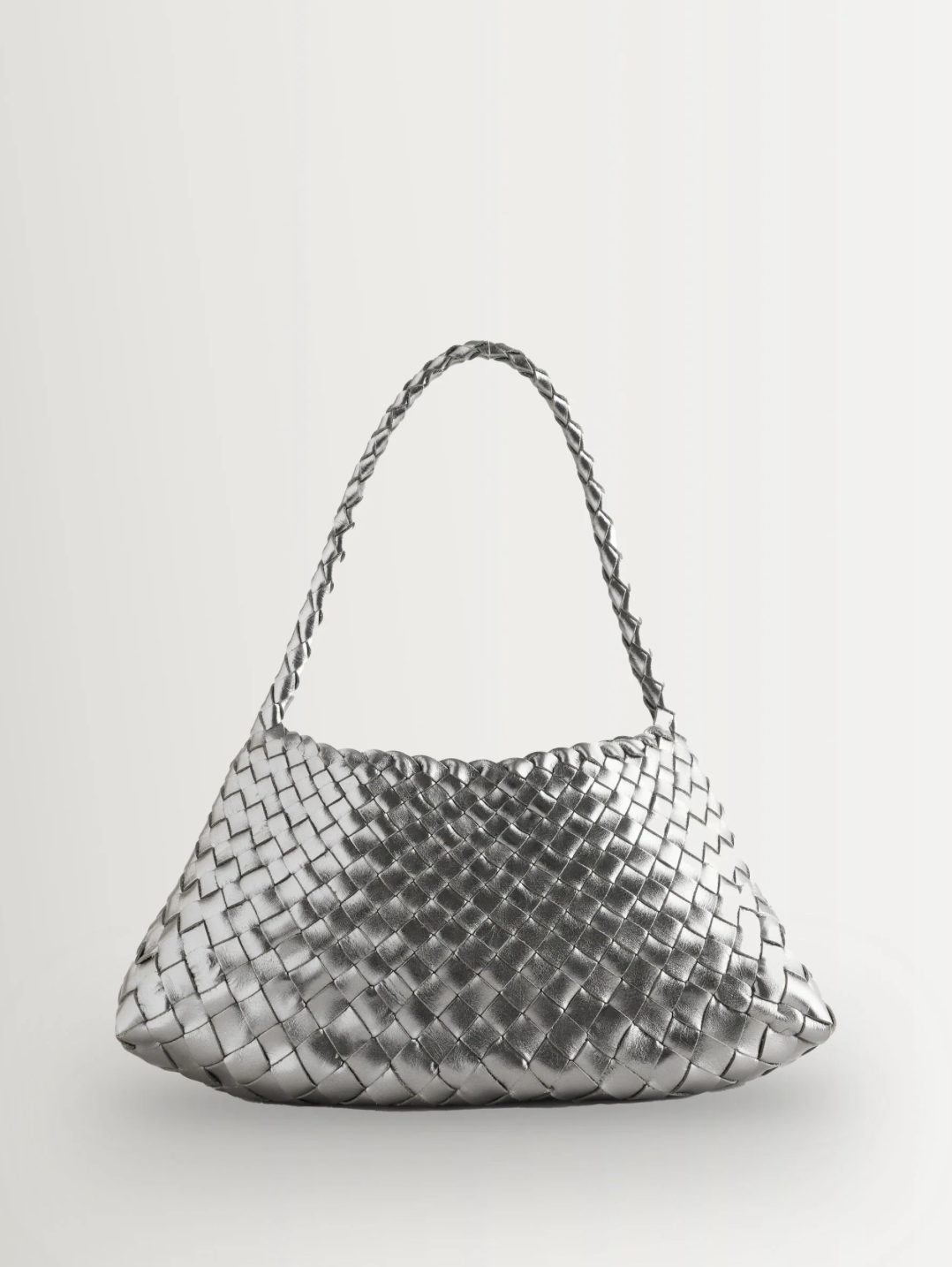 The Rosana Bag by Dragon Diffusion is a masterclass in understated luxury. Handwoven from supple leather with a distinctive tapered weave, its baguette silhouette nods to the brand’s beloved Santa Croce style while offering a fresh, modern edge. Perfect for day-to-night dressing, it slips effortlessly over the shoulder—style it with a tailored coat for city strolls or a silk dress for evening gatherings. Finished with the signature antiqued St. Christopher charm, it’s a timeless piece designed for the discerning traveller.