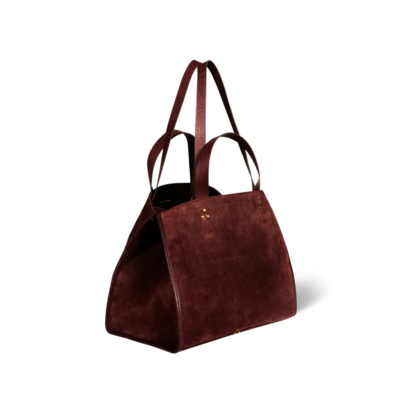 Tote bag, to wear over the shoulder or hand-held. Leather handles. Closing by leather tabs with pressure.