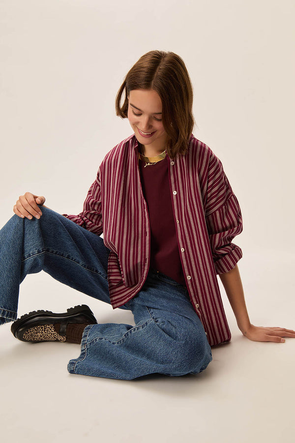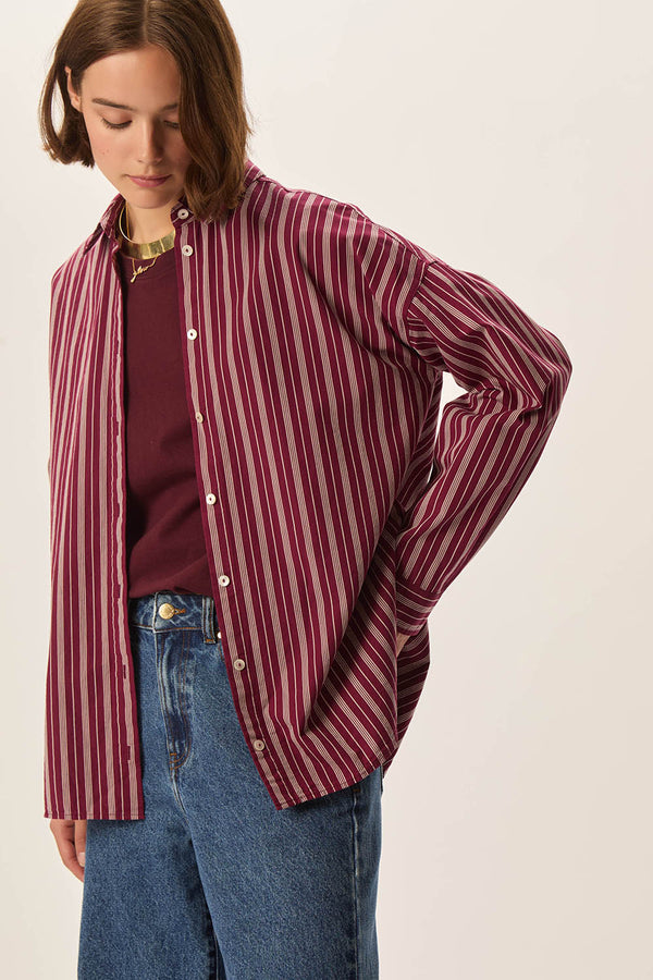 Made from soft cotton, the Vilmo striped shirt takes western folk-style influences and mixes them with a long, straight and modern cut for a decidedly on-trend silhouette.
