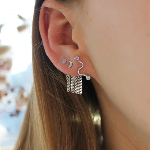 Description: Tiny Bella moon ear stud with a white zirkon.